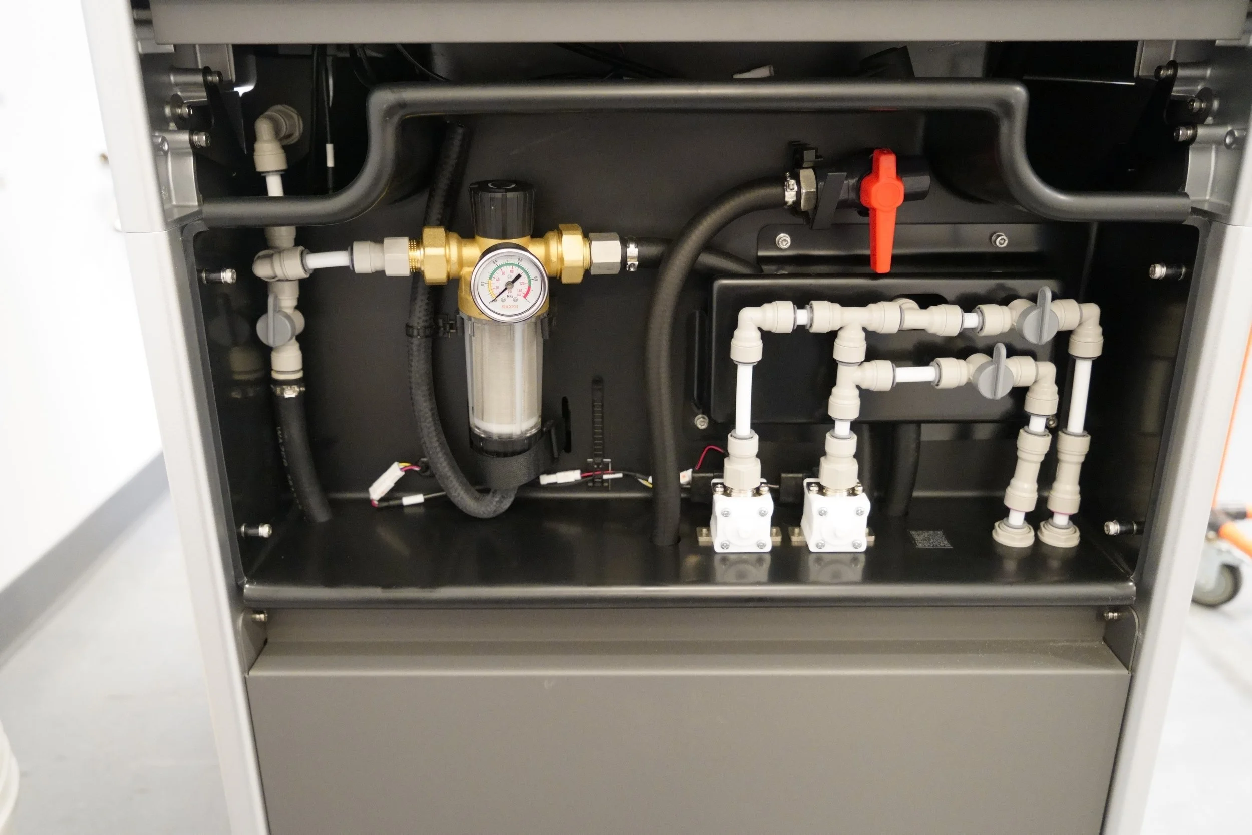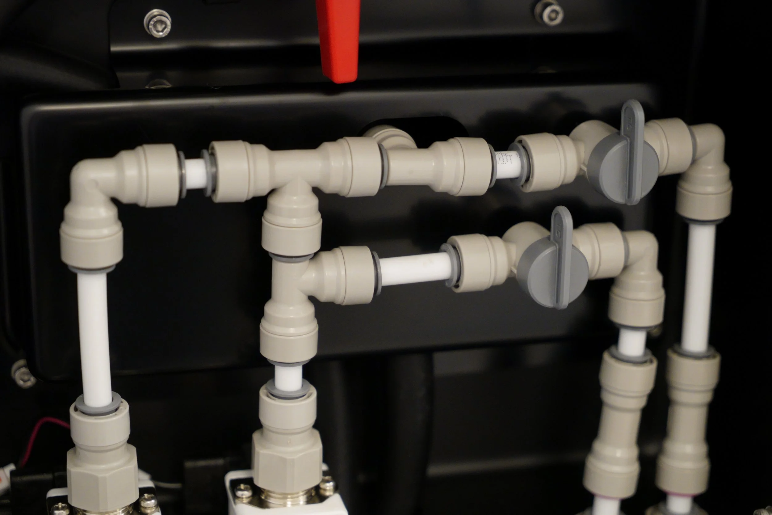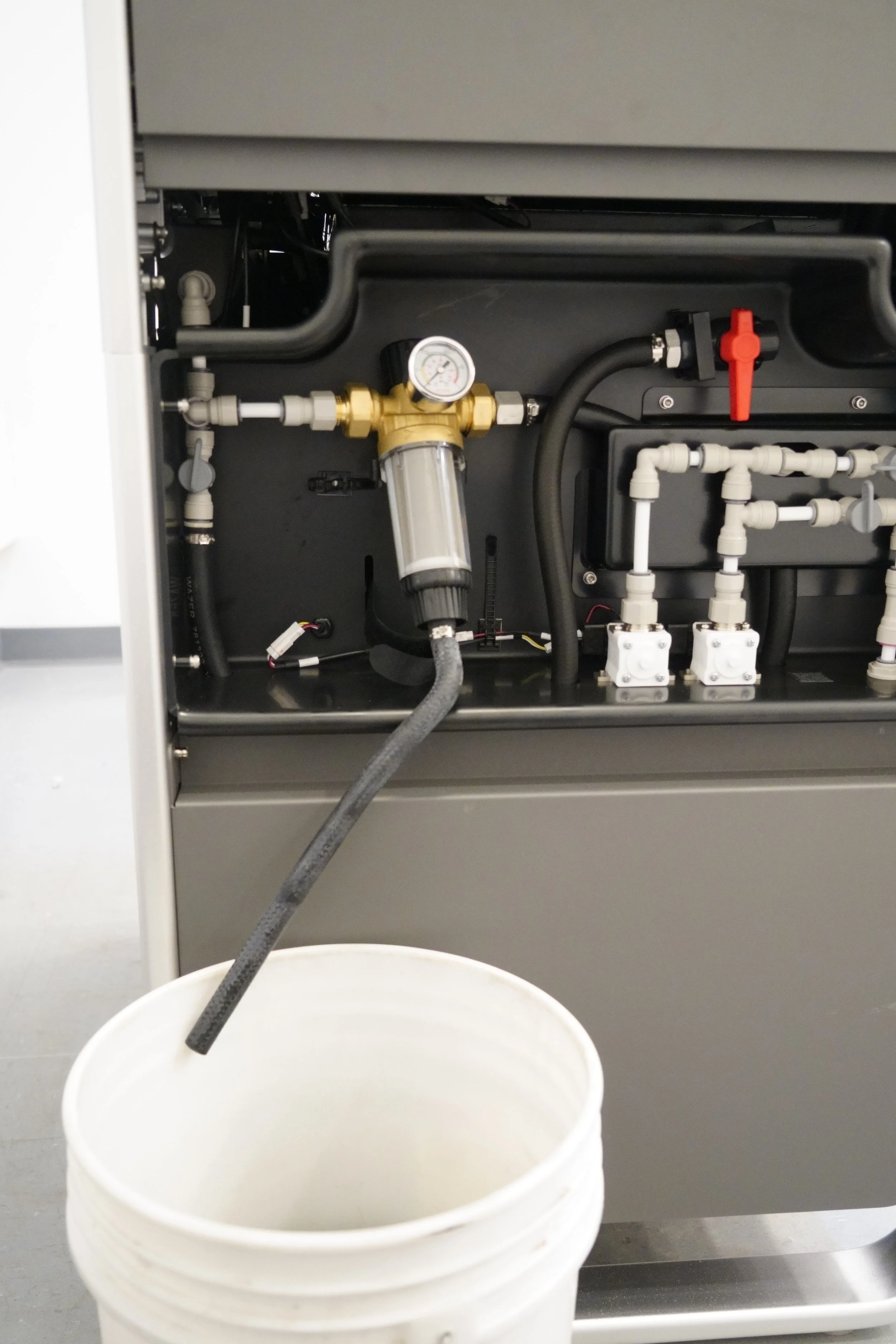 The hydraulic cavity has three primary capabilities: troubleshooting the abrasive collection system, manually draining the tank, and filtering input water into the high pressure system.