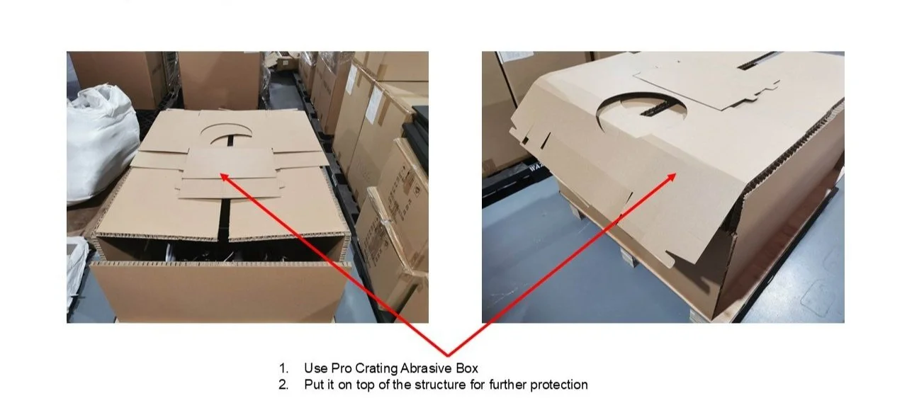 9. For further protection, Please the Pro crating abrasive box on top of the whole crate assembly for better protection