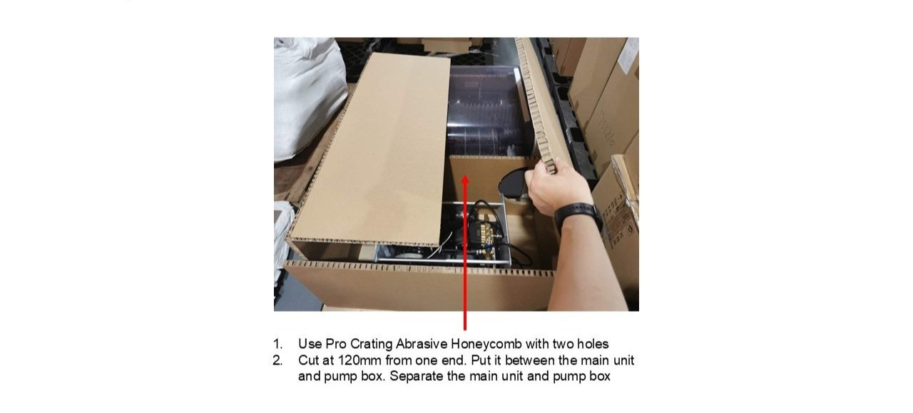 7. Cut the Pro crating abrasive honeycomb 120mm from one end, put it in the middle of the pump box and Desktop Main unit.