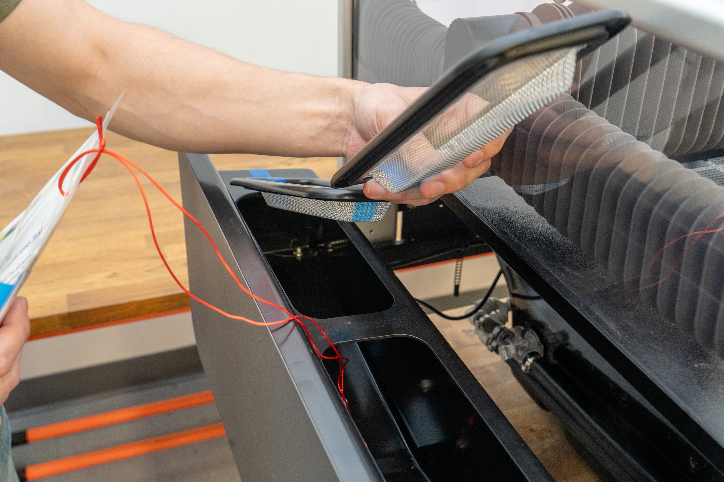 3. Remove the tape from the abrasive mesh screens and set the screens off to the side.
