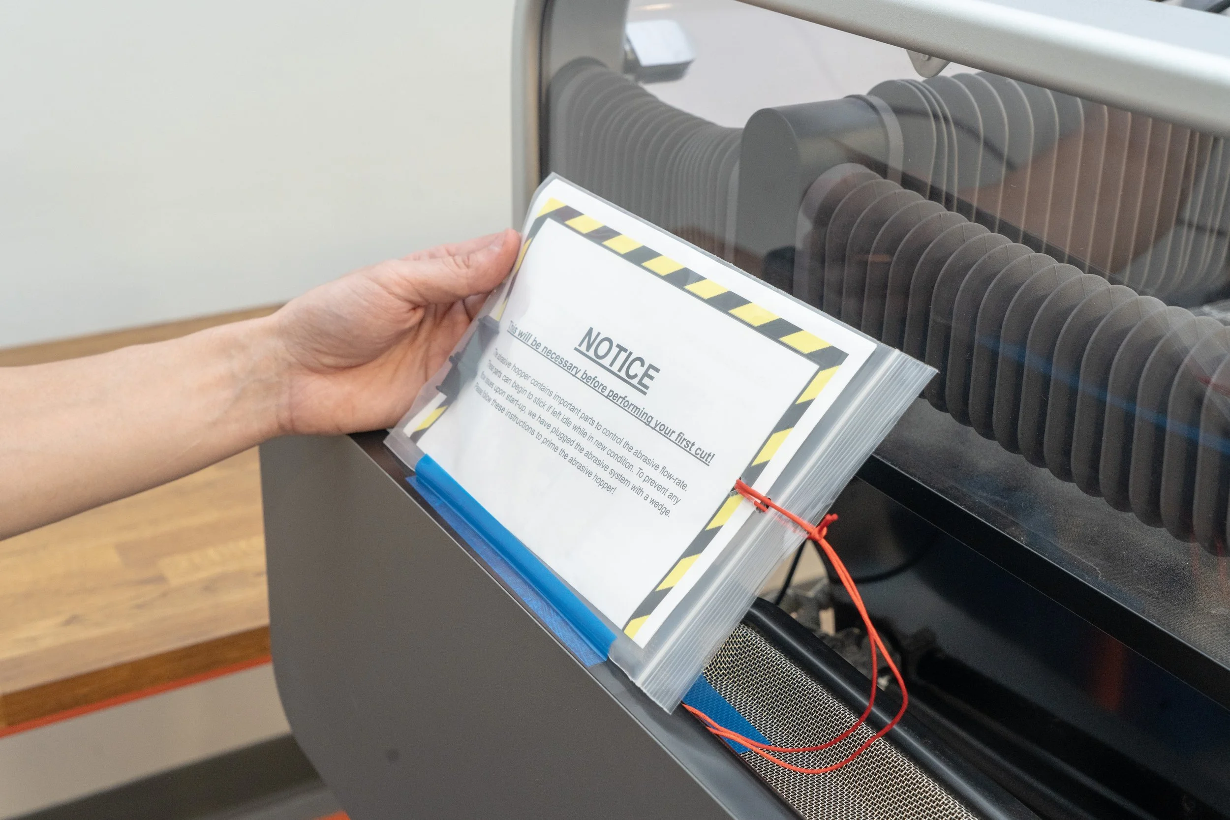 The Dry Abrasive Subsystem is a vital system to the WAZER Water Jet! The flow-rate must be metered at all times of operation. In order to help maintain the ideal flow-rate before your first cut, a wedge has been installed into the dry abrasive drop tube. This wedge will need to be removed before initiation and is not necessary after a few hours of run time.