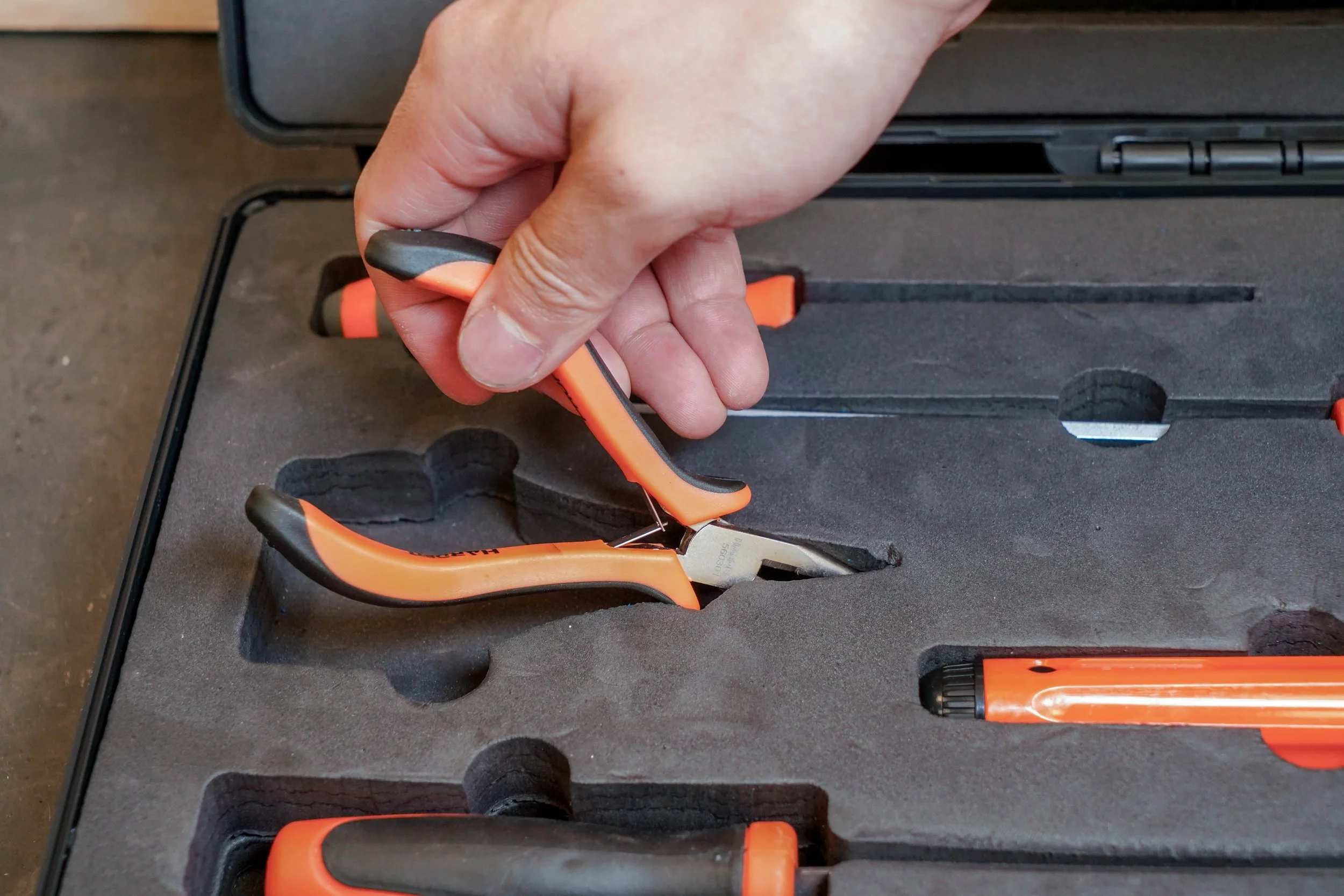 Another function of the pair of pliers included in the tool case would be shearing, or snipping.